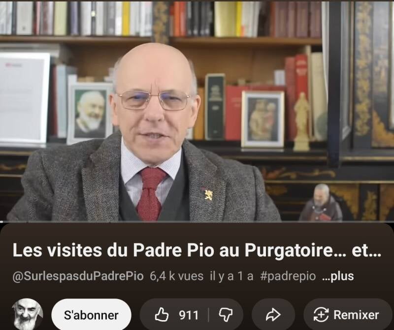 Ci-dessous: L'adepte de la TFP Jean Goyard anime la chaîne YouTube 《sur les pas du Padre Pio》.