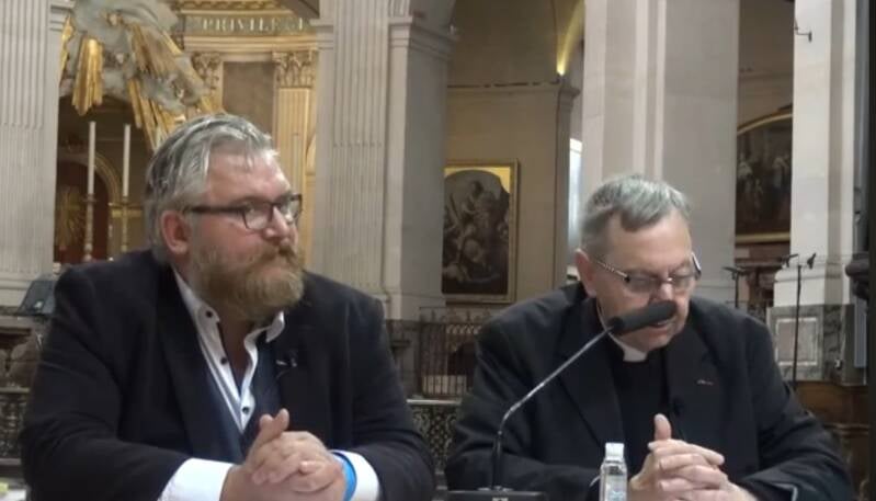 Ci-dessous : les abbés Guillaume de Tanouarn (à gauche) et Michel Viot (à droite), dans une vidéo publiée par L'Homme Nouveau.